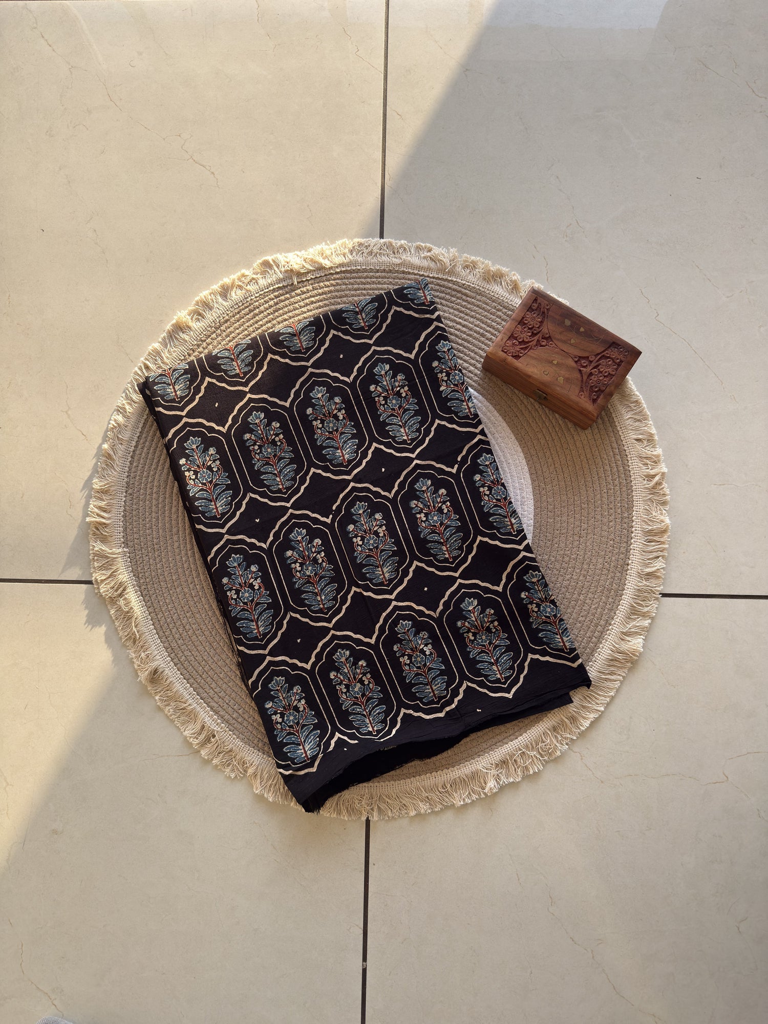 Black Ajrakh Hand Block Print Cotton Fabric | Natural Dyes