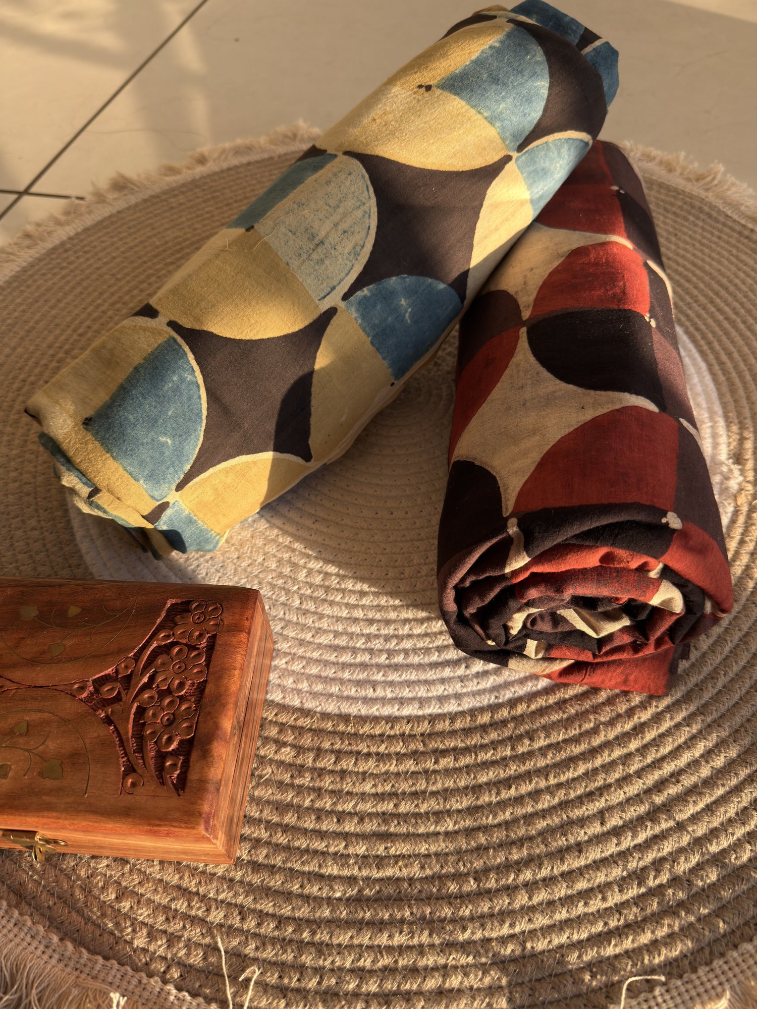 Shop our Ajrakh cotton fabric, Ajrakh modal silk saree online collection featuring Ajrakh modal silk dupattas, Ajrakh modal silk fabric, and organic Kala cotton fabric at competitive Kala cotton prices.